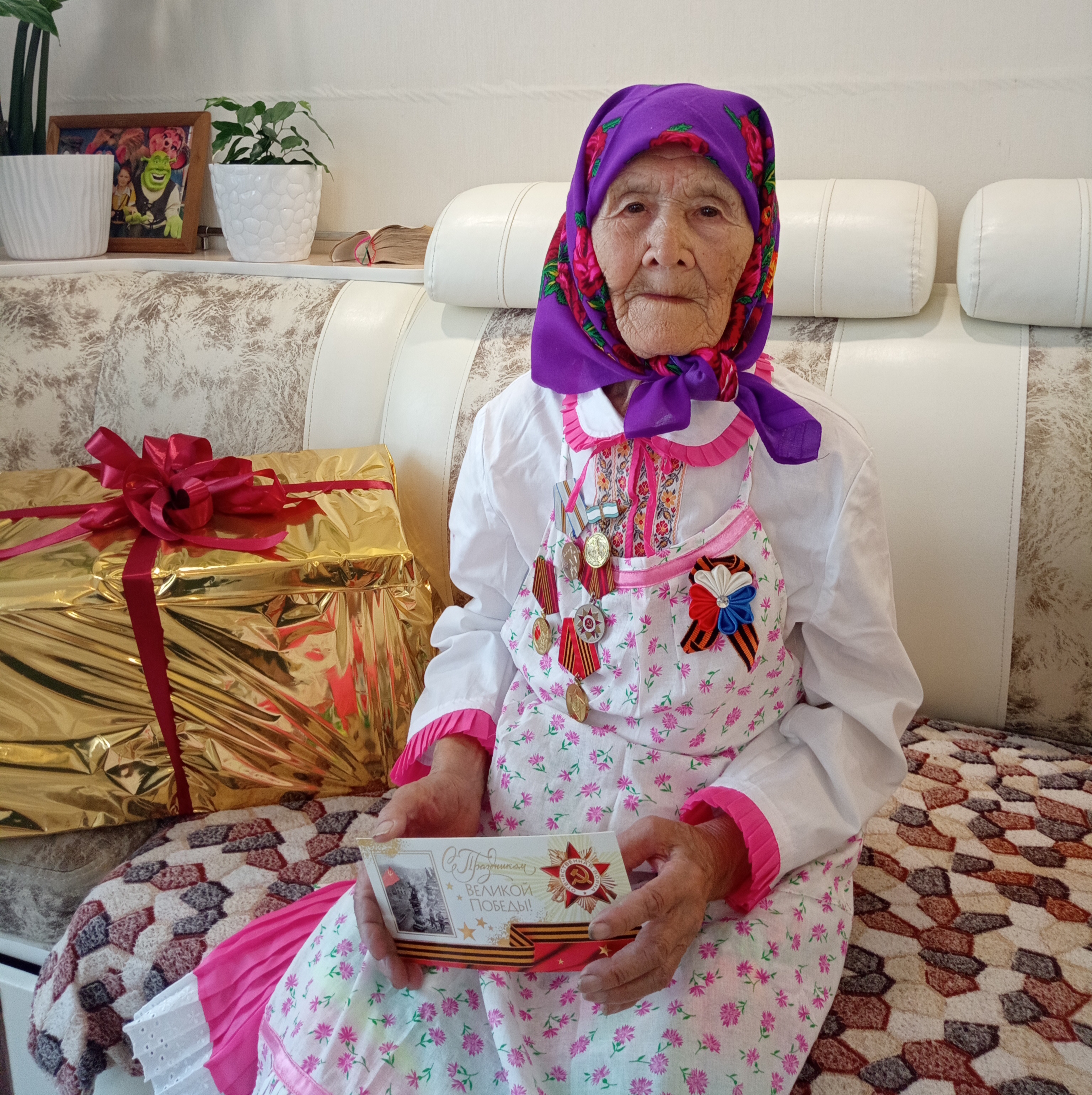 Накануне празднования 80-летия Победы в Великой Отечественной войне коллектив Волжского городского суда Республики Марий Эл поздравил ветерана Великой Отечественной войны Яковлеву Анну Григорьевну. Анна Григорьевна, родилась 09 декабря 1930 году в деревне Курмузаково Волжского района Республики Марий Эл, в крестьянской семье. Окончила 3 класса начальной Курмузаковской школы. Когда ей было девять лет, умер отец, она стала старшей в семье. Помогала матери по хозяйству, в колхозе собирала по полям урожай, колоски, все собранные колоски сдавала по счету, а за работу давали немного хлеба, с которым она делилась со своей семьей. Также работала на заготовке сена. По ее рассказам, было очень тяжело в годы войны. Когда началась война, ей исполнилось 11 лет, все дети, в том числе и она наравне со взрослыми работали без отдыха и сна. «Всё для фронта, всё для победы» - таков был девиз тружеников тыла, среди которых была и она. Награждена: медалью «Ветеран Великой Отечественной войны», медалью «Материнство», медалями «65 лет Победы в ВОВ», «70 лет Победы», «75 лет Победы», «80 лет Победы». В 1949 году вышла замуж, родила 6 детей, имеет 9 внуков, 12 правнуков. Внучка Анны Григорьевны, Жарникова Надежда Андреевна более 10 лет работает в Волжском городском суде Республики Марий Эл. Коллектив Волжского городского суда Республики Марий Эл выразили Анне Григорьевне особую благодарность за мужество, героизм, отвагу и смелость, проявленные в годы войны и послевоенное время, пожелали крепкого здоровья и долгих лет жизни! Анна Григорьевна поблагодарила за внимание и поздравление, пожелала мира и здоровья и успехов в работе. ![]() ![]()